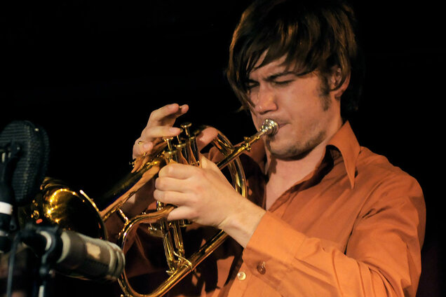 Matthias Schriefl während Jens Düppes Reihe „Kommunikation 9“ mit der Formation