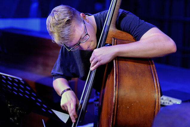 Felix Henkelhausen mit der Formation Tau 5 im Artheater am 8.8.2023
