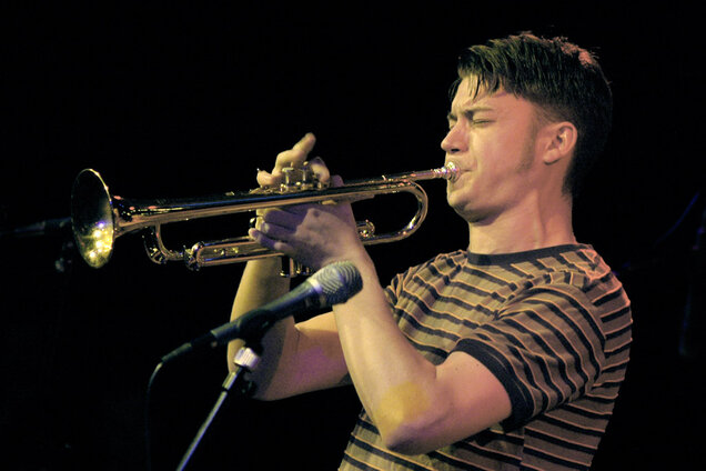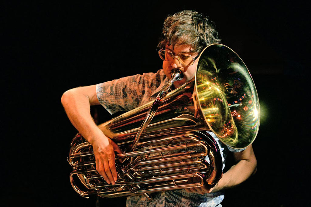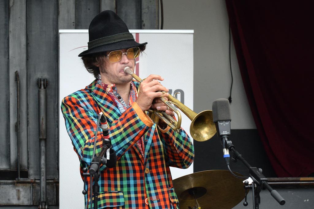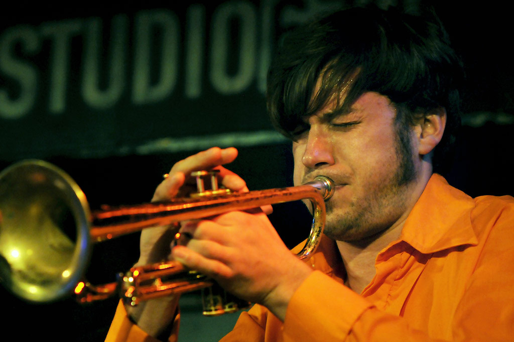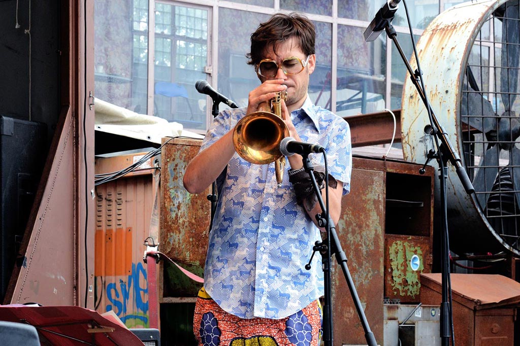 Matthias Schriefl während Jens Düppes Reihe „Kommunikation 9“ mit der Formation
